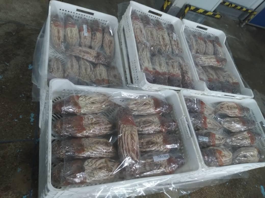 | Conditionnement | Congelé en cartons de 10 kg et 20 kg. Frais en emballage de 10 kg poids fixe avec polystyrène, Gel-pack, éponge ou essuie-tout et paille humide. |